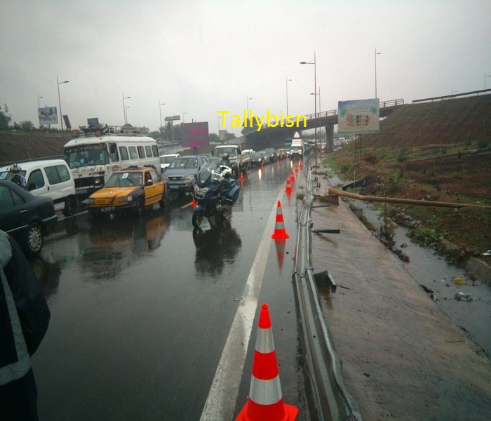 Après plusieurs jours d'accalmie principalement à Dakar, le ciel a ouvert ses vannes ce vendredi sur la capitale sénégalaise. Un déluge qui n'est pas sans dégâts puisque sur l'autoroute à hauteur de l'école Mariama Niass, un camion s'est renversé, entraînant de sérieuses complications pour ne pas dire embouteillages.