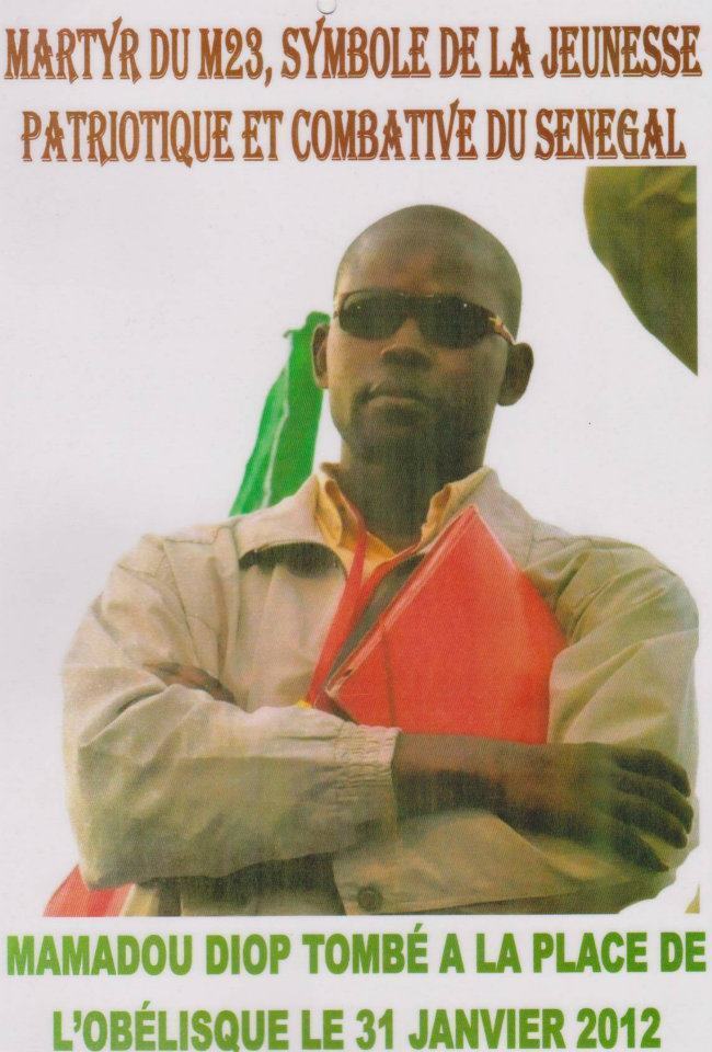 Mamadou Diop, a été mortellement heurté par le camion-dragon de la police lors d’une manifestation du M23 à la place de l’Obélisque. Il était étudiant en master, en Lettres Modernes à la Faculté des Lettres et des Sciences Humaines (FLSH) à l’Université Cheikh Anta Diop de Dakar (UCAD).