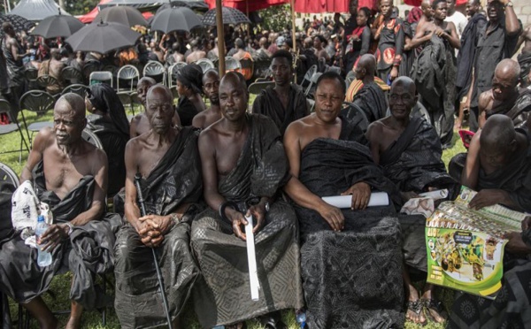 C'était une petite dame aux cheveux courts, l'épaule nue, enroulée dans un châle. Dans son palais de Kumasi, assise sur le banc des souverains, elle recevait ses sujets, protégée par le feuillage d'un grand arbre, derrière des lunettes rondes un peu trop lourdes pour elle. La reine des...