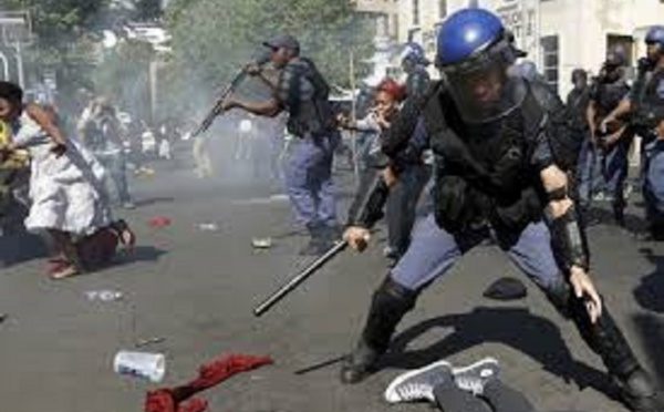La police sud-africaine a tiré des balles en caoutchouc et utilisé des canons à eau contre plusieurs milliers de manifestants réunis devant le palais présidentiel à Pretoria pour réclamer le départ du chef de l'Etat Jacob Zuma.