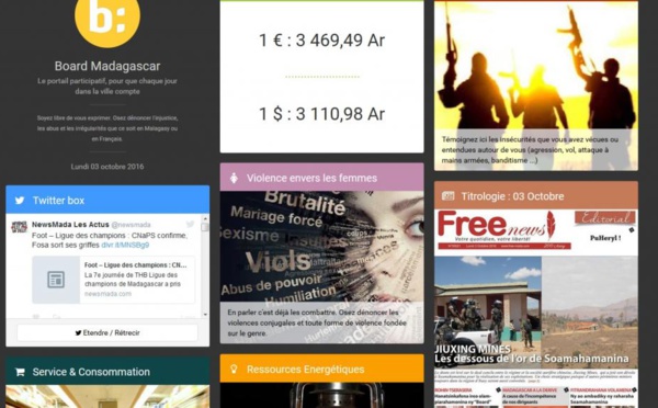 A Madagascar, le site internet Board.mg est lancé ce lundi. A l’initiative d’un groupe de jeunes engagés, développeurs web, artistes et journalistes, le site est une plateforme pour que les citoyens puissent lancer des alertes ou témoigner d’actes de violence et d’incivilités. L’objectif est de réunir assez de témoignages pour...
