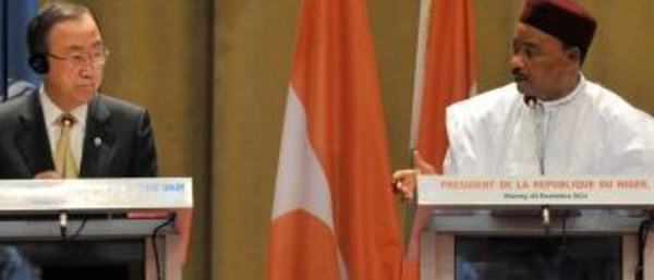 Le secrétaire général de l'ONU, Ban Ki-moon a rencontré le président nigérien Mahamadou Issoufou, le mercredi 6 novembre 2013, à Niamey, deuxième étape d'une tournée au Sahel débutée la veille, au Mali. Ban Ki-moon a ensuite participé à une réunion au palais des Congrès de Niamey, avant de visiter une maternité en centre-ville...