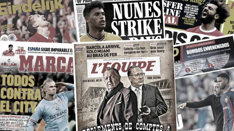 Le journal AS nous offre une belle Une en mettant en avant le City d’Haaland, le PSG de Mbappé et le Bayern de Kane. Dans son encart, le Mundo Deportivo nous rappelle les équipes participantes réparties dans 4 chapeaux différents. Pareil en Italie avec La Gazzetta dello Sport qui évoque 4 boules pour un rêve.