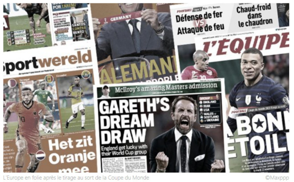 Le tirage au sort de la phase de poules de la Coupe du Monde 2022 a beaucoup fait réagir en Europe. Entre soulagement, crainte et avertissement, tous les journaux consacrent leur première page à cet évènement. La France y croit dur comme fer Hier soir s'est déroulé le tirage au sort de la phase de poules de la Coupe du monde...