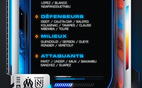 À l'occasion de la troisième journée de Ligue 1, l'Olympique de Marseille reçoit le FC Nantes, ce samedi à 21 heures à l'Orange Vélodrome. Pour cette rencontre, Igor Tudor a ainsi convoqué un groupe de 22 joueurs. Touché au psoas depuis le début de la saison, Pau Lopez est bien présent. Tout comme Cengiz Ünder, même si son nom...