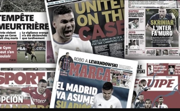 Le transfert de Casemiro à Manchester United fait les gros titres, le FC Barcelone ajoute un nouveau nom pour son mercato et Nice déçoit en barrages de Ligue Europa Conférence, retrouvez dans votre revue de presse Foot Mercato les dernières informations de la presse sportive européenne. Grosse déception pour Nice On commence...