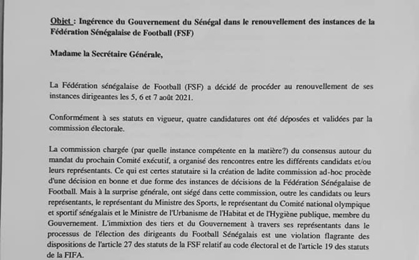 Le Comité de défense du Football Sénégalais (Codefs) constate pour le dénoncer "l'ingérence du gouvernement du Sénégal dans le renouvellement des instances de la Fédération de Football Sénégalais (FSF)". Dans une missive adressée à la Fifa ( Fédération internationale de football association ), le Comité demande à sa Secrétaire...