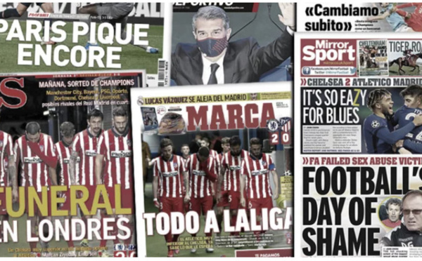 Les Colchoneros sont fortement critiqués en Espagne, une sombre affaire plonge le foot anglais dans la stupeur et la présentation du nouveau président du Barça fait grand bruit. Revue de presse du 18 mars 2021. L'Altético, une équipe «discrète et inoffensive» La victoire de Chelsea sur l'Atlético (2-0) fait réagir, surtout...
