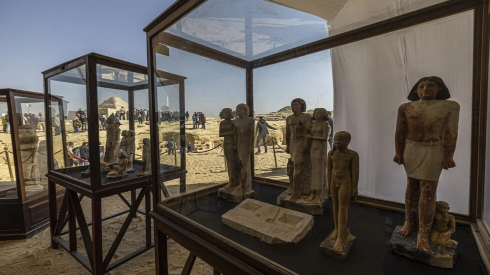 L'Egypte a dévoilé jeudi quatre tombes de dignitaires pharaoniques et une momie de plus de 4.000 ans à Saqqara près du Caire, la dernière des découvertes annoncées en grande pompe par un pays soucieux de faire revenir les touristes.