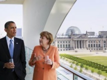 Barack Obama et Angela Merkel, le 19 juin 2013 à la chancellerie de Berlin, devant le Parlement. REUTERS/Bundesregierung/Steffen Kugler/Handout via Reuters