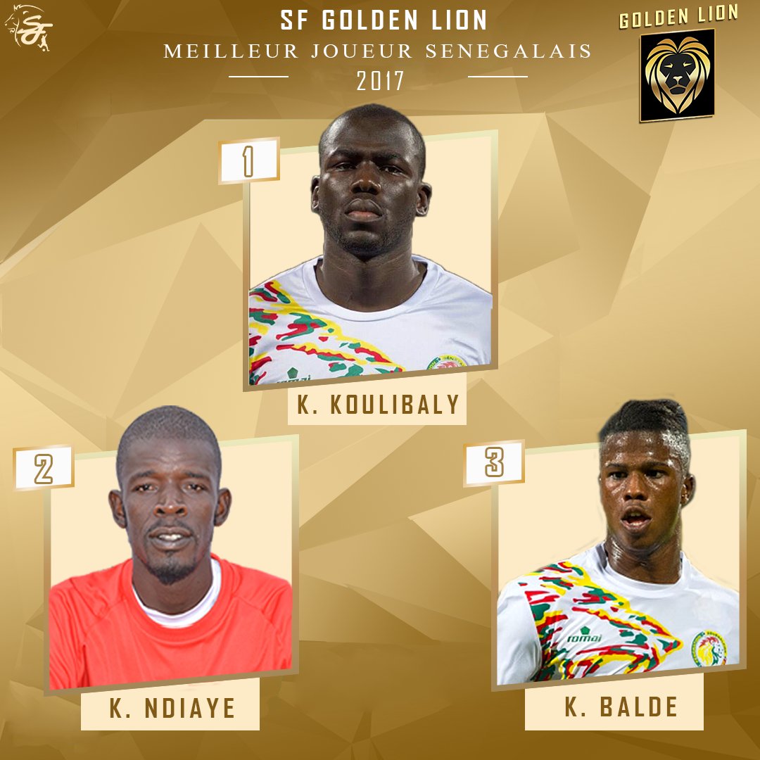 Le Podium du "Golden Lion 2017" de Senegal Football#GoldenLionSF: Meilleur joueur de l'année en Équipe Nationale.