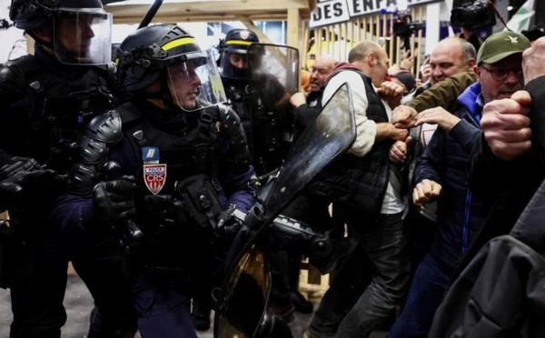 Des dizaines de manifestants ont forcé l'entrée du Salon de l'agriculture et se sont heurtés au service d'ordre, samedi 24 février à Paris en début de matinée. Emmanuel Macron est arrivé tôt sur place pour rencontrer des syndicats, sous haute présence policière. L'ouverture au public, prévue à 9 heures, a été retardée. Le...