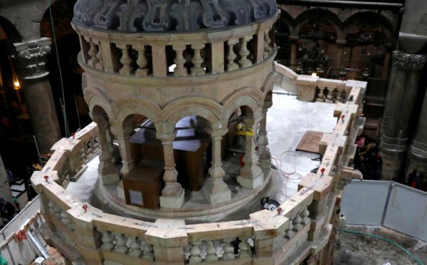 Le projet a été lancé au mois de mai 2016. Les spécialistes ont reconstruit l'édifice religieux qui abrite la tombe, soutenu par des structures métalliques depuis un tremblement de terre. Fin des travaux de rénovation à l'église du Saint-Sépulcre de Jérusalem. L'édifice abrite le tombeau où, selon la tradition, le Christ a été...