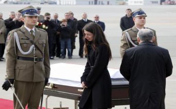 La dépouille du président Kaczynski est arrivée ce dimanche 11 avril 2010 à l'aéroport militaire de Varsovie. Le cercueil a ensuite été transporté par convoi jusqu'au palais présidentiel où il est désormais exposé au public. En revanche, le corps de son épouse n'a toujours pas été identifié et n'a donc pas pu être rapatrié avec...