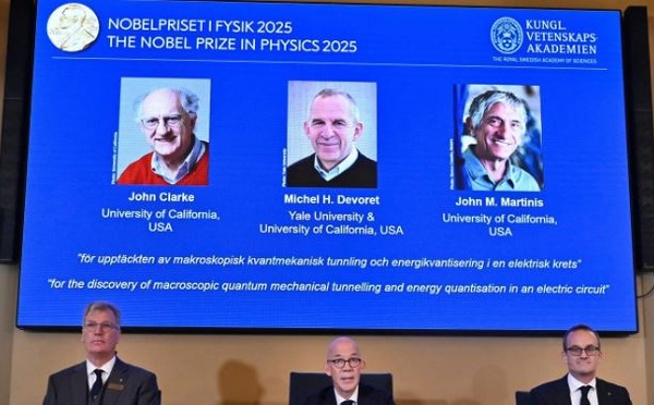 Le prix Nobel de physique a été décerné, ce mardi 7 octobre, au Français Michel H. Devoret, à l'Américain John M. Martinis et au Britannique John Clarke pour leur découverte de l'effet tunnel macroscopique en mécanique quantique et de la quantification de l'énergie dans un circuit électrique. Le trio a été récompensé « pour...
