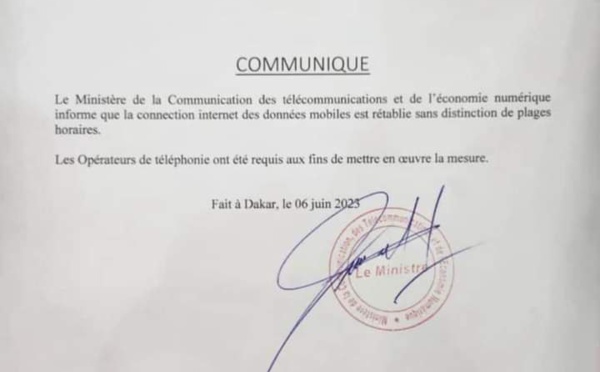 Un début de dégel ? Peut-être bien ! L’Etat du Sénégal, par le biais du ministère de la Communication, des Télécommunications et de l’Économie numérique a décidé de rétablir la connexion internet des données mobiles sans distinction de plages horaires à partir de ce mardi. Pour rappel, depuis dimanche dernier, l’Etat du...