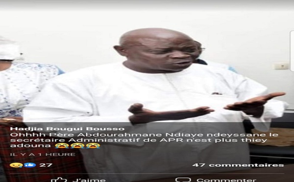 Le Secrétaire administratif de l'Alliance pour la République (Apr, parti au pouvoir) n'est plus. Abdourahmane Ndiaye est décédé tard dans la nuit du dimanche. Le défunt était aussi Conseiller spécial du président de la République, Macky Sall. Il avait quitté le PDS (Parti démocratique sénégalais ) en même temps que le...