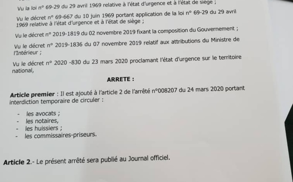 Le couvre-feu, assorti de l'état d'urgence décrété sur toute l'étendue du territoire, décrété lundi soir par le président Macky Sall, ne sera pas appliqué sur tout le monde. Le ministre de l'Intérieur, Aly Ngouille Ndiaye, a décidé d'exempter certaines personnalités dont des avocats, huissiers, notaires, et...