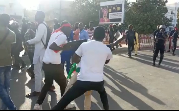 C’est la scène marquante de cette marche de vendredi organisée par Ñoo Lank. Arrivé devant la prison du Camp pénal, un des manifestants s’est débattu avec ses camarades pour pénétrer dans le lieu où est détenu Guy Marius Sagna pour le sortir de là-bas... Regardez !!!