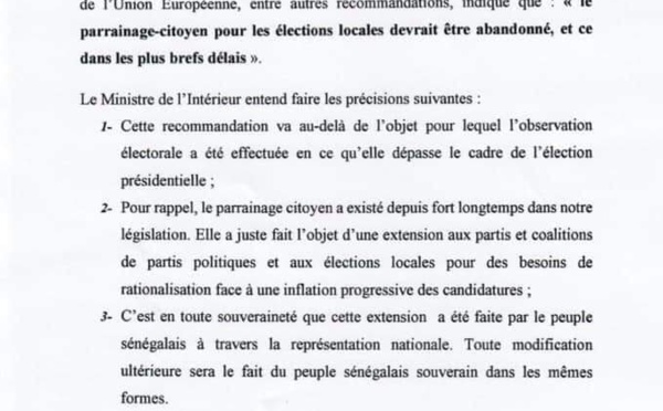 La Mission d’observation de l’Union Européenne a fait un rapport post-électoral pour recommander à l’Etat du Sénégal d’abandonner le système du parrainage. Ce qui, selon le ministre de l’Intérieur Aly Ngouille Ndiaye, outrepasse la mission assignée à cette délégation qui était chargée de superviser l'élection présidentielle du...