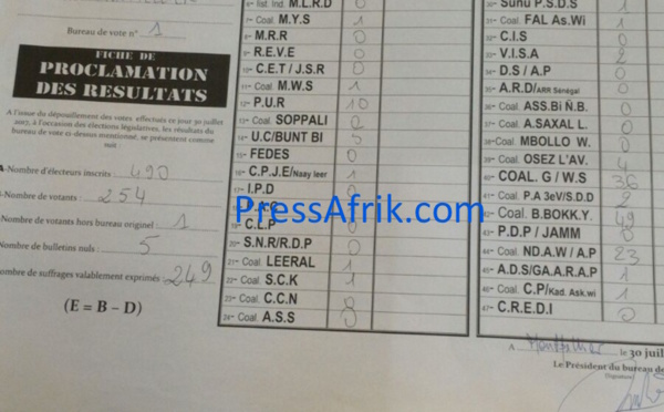 Les premiers résultats de la cité phocéenne sont tombés. La Coalition gagnante Wattu Senegaal a raflé les 4 bureaux de vote du centre de Marseille avec 103 voix, suivie de près par la coalition Benno Bokk Yakaar Centre de vote de Marseille Coalition Gagnante Wattu Sénégal 24+24+30+25=103 Bby 21+24+30+ 26=101...