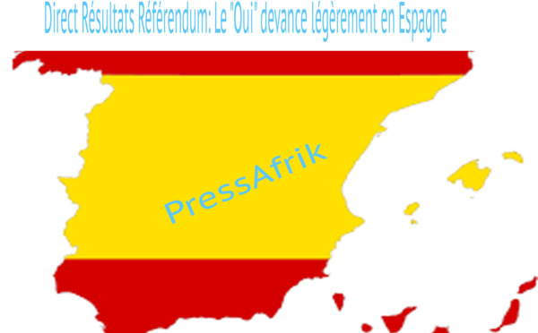 Quelques résultats provisoires de bureaux de vote en Espagne Burgos Bureau de vote 1 Inscrits 76 Exprimes 22 Non 15 Oui 7 Murcia bureau 1 Exprimes 57 Oui 57 Non 16 Bureau 2 Exprimes 46 oui26 Non 20 Nos félicitations á notre frère Mady Cisse Ba Malaga...