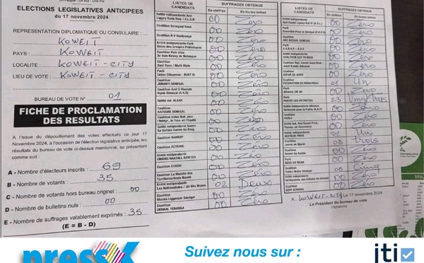 Les premières tendances des élections législatives sénégalaises au Koweït commencent à être connues. Dans le bureau de vote numéro 1 de Koweït City, le parti Pastef-Les Patriotes arrive en tête avec 23 voix. Il est suivi par la coalition Takku-Wallu Sénégal, qui obtient 5 voix, et la coalition Jamm Ak Njaarinu, créditée de 3...