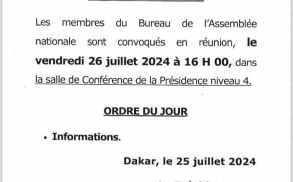 Le Premier ministre, Ousmane Sonko, pourra bientôt faire sa Déclaration de politique générale. En effet, après le dépôt hier mercredi, du rapport portant modification du règlement intérieur, le bureau de l'Assemblée nationale est convoquée demain vendredi à 16 heures, en réunion. Cette rencontre se tiendra à la salle de...