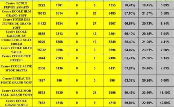 C'est un score quasi-soviétique qui est constaté à Grand-Yoff. La Coalition Bassirou Diomaye Faye n'a pas fait de cadeau à ses adversaires. Elle gagne avec 63,90% tandis que Khalifa Sall qui a son fief dans ce quartier s'est classé troisième avec 8,10% derrière Amadou Ba qui a obtenu 22,24%. Voir le visuel