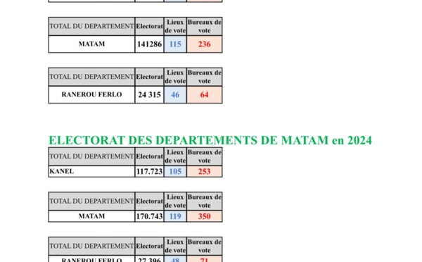 La direction générale des élections ( Dge) apporte des précisions sur des informations selon lesquelles : les 3 départements de la région de Matam ont le même nombre d’électeurs, et le nombre d’inscrits du département de Ranérou Ferlo est passé de 24.000 en 2019 à 193.000 en 2024. Selon toujours ces informations divulguées par...