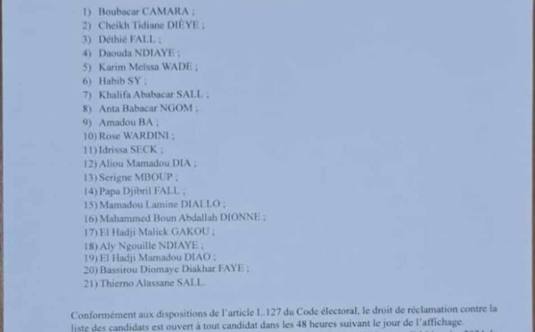 Le Conseil constitutionnel a publié ce vendredi 12 janvier, la liste des candidats à la présidentielle de 2024, arrêtée à 21. Comme indiqué dans le communiqué ci-dessous, le greffe du Conseil constitutionnel recevra les réclamations les lundi 15 et mardi 16 janvier 2024 de 8 heures à 17 heures. Les réclamations déposées en...