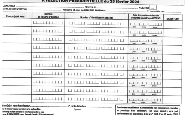 Ce vendredi les candidats ou leurs mandataires recevront le modèle de la fiche de parrainage. Dr. Abdourahmane Diouf, candidat déclaré à la présidentielle, a par contre deux inquiétudes à soumettre au ministre de l'intérieur. Il s'agit en premier de l'indisponibilité de l'arrêté qui fixe le montant de la caution...