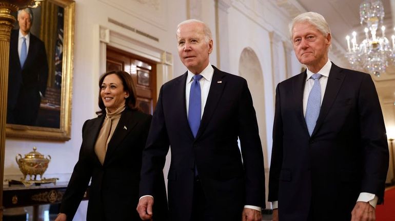 De nombreuses figures démocrates ont rapidement soutenu la candidature de Kamala Harris dimanche soir, bien que certains membres influents du parti, dont l’ancien président Barak Obama, n’aient pas apporté leur soutien dans l’immédiat à la vice-présidente. C’est en particulier le cas de la présidente de la chambre des représentants, Nancy Pelosi, qui a seulement salué le retrait de Joe Biden.