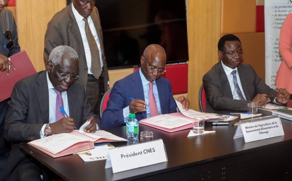 Le ministre de l'Industrie et du Commerce, Dr Serigne Gueye Diop, et le ministre de l'Agriculture, Dr Mabouba Diagne, ont co-présidé la signature d'un protocole d'accord avec la Confédération nationale des employeurs du Sénégal (CNES), visant à soutenir la politique de souveraineté alimentaire du gouvernement, alignée avec la...