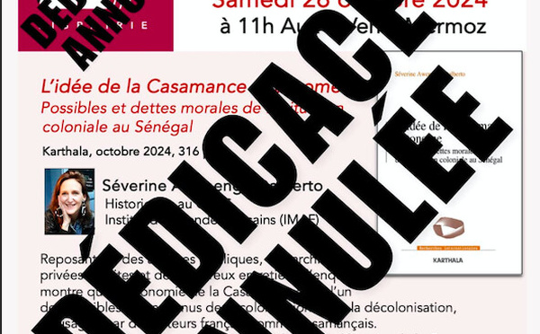 La séance de dédicace de l’ouvrage de Séverine Awenengo Dalberto, historienne et chargée de recherches au CNRS à l’Institut des mondes africains (Imaf), initialement prévue ce samedi 24 à la librairie aux 4 Vents à Dakar-Mermoz, a été reportée à une date ultérieure, selon une annonce des éditions Karthala. L’ouvrage...