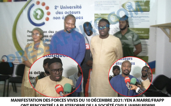 Les mouvements Y’en A Marre et Frapp France Degage ont rendu visite à la Plateforme de la société civile Jammi Rewmi pour échanger sur la grande manifestation prévue de le 10 décembre prochain pour réclamer une justice équitable pour tous les Sénégalais. Guy Marius Sagna et Malick Diop se sont exprimés sur les sujets abordés...