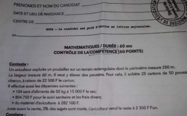 C'est le Secrétaire général du Cusems Authentique, Dame Mbodj, qui a vendu la mèche à la presse. Plusieurs erreurs ont été relevées dans les épreuves de Maths du Certificat de fin d'études élémentaires (Cfee) et de l’Entrée en 6e qui se déroulaient hier vendredi. "Tous les candidats étaient déboussolés. Ils ne pouvaient pas...