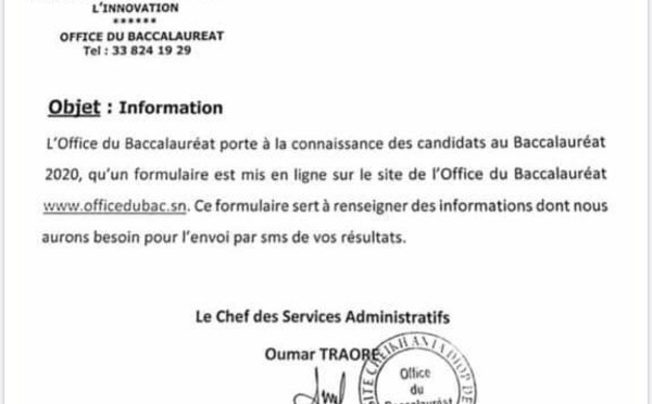 Il n'y aura pas de délibéré des résultats du Baccalauréat cette année 2020, comme cela se faisait à l'accoutumé. Les choses se feront autrement en raison de la pandémie du coronavirus. L'Office du Bac a décidé d'envoyer aux candidats les résultats de leur examen via Sms (message). Certainement pour éviter les rassemblements....