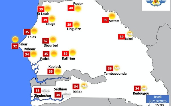 Les prochaines 24 heures seront marquées par un temps chaud et stable sur l’ensemble du territoire sénégalais, selon les prévisions publiées pour la période du jeudi 30 octobre à 12h au vendredi 31 octobre à 12h. Le ciel restera « globalement clair sur la majeure partie du pays », bien que quelques passages nuageux...