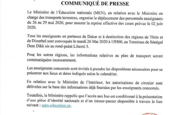 Le gouvernement sénégalais opte pour une réouverture progressive de l’école. Cette reprise des cours qui ne va concerner pour le moment que les élèves en classe d’examen est prévue le 2 juin 2020. La décision a été prise par le chef de l’Etat en Conseil des ministres du 29 avril 2020, également réitéré le 11 mai dernier lors de...