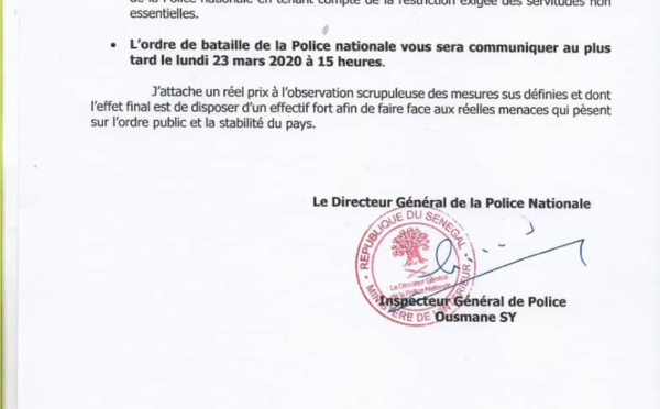 Le Directeur général de la police nationale a sorti un circulaire titré : Plan de mobilisation nationale de lutte contre le Covid19 ». Dans le document que PressAfrik vous propose en attaché, il demande aux différents commissaires de consigner tout le personnel de la Direction nationale de la police sous leurs ordre à partir du...