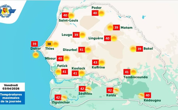L’Agence nationale de l'aviation civile et de la météorologie (Anacim) a publié ses prévisions météorologiques couvrant la période du 3 avril 2026 à 12h00 au 6 avril 2026 à 00h00. L’agence annonce une forte chaleur sur une grande partie du Sénégal, particulièrement dans les zones du Centre et du Sud-Est où les...