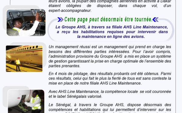 Le Groupe AHS, à travers sa filiale AHS Line Maintenance, a reçu les habilitations requises pour intervenir dans la maintenance en ligne des avions. En 4 mois à la tête de Aviation Handling Services (AHS), l'administrateur, Abdoulaye Sylla a pu ainsi boucler ce dossier en latence depuis 2009. Dakar dispose,désormais, d'un...