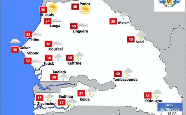 L’Agence Nationale de l’Aviation Civile et de la Météorologie (ANACIM) a publié ce lundi une alerte de "prévision à très courte échéance" couvrant la période allant du 16 juin à 12h00 au 17 juin 2025 à 12h00, annonçant des conditions météorologiques potentiellement marquées dans plusieurs zones du pays. Selon le communiqué...