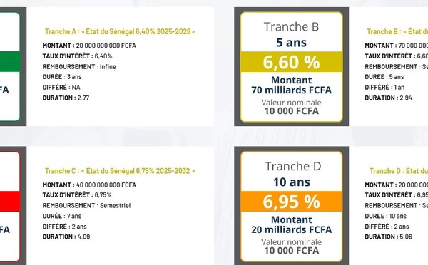 L’Etat du Sénégal, par l’intermédiaire de son Ministère des Finances et du Budget, annonce le lancement d’un emprunt obligataire par appel public à l’épargne d’un montant de 150 milliards de francs CFA. Cette levée de fonds vise à soutenir les investissements prévus dans le budget 2025, notamment dans les secteurs stratégiques...