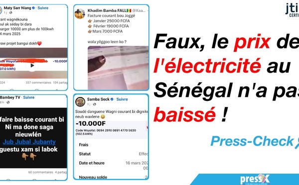 Depuis quelques jours, une rumeur concernant une baisse du coût de l’électricité au Sénégal circule intensément sur les réseaux sociaux. Relayée par plusieurs internautes, cette information suscite des réactions diverses. Mais qu’en est-il réellement ? Une vérification s’impose. La source de la rumeur PressAfrik n’a pas pu...