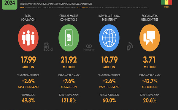 Le numérique au Sénégal continue de se développer à un rythme soutenu porté par une adoption croissante d’Internet et des réseaux sociaux. Selon les données de février 2025 de Data Reportal, le pays compte 10,79 millions d’utilisations d’internet soit un taux de pénétration de 60% et 3,712 millions d’utilisateurs de médias...