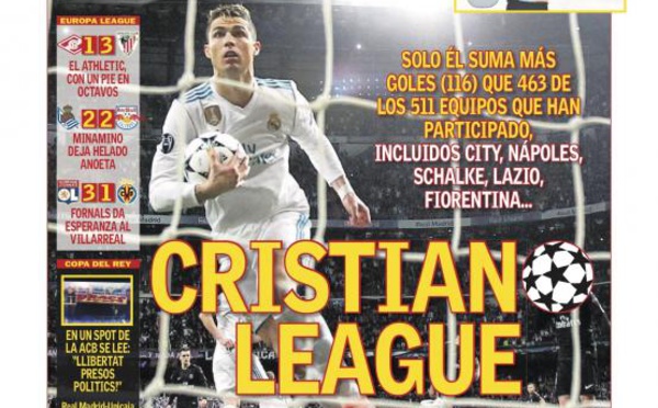 Découvrez les Unes des principaux journaux sportifs espagnols de ce vendredi 16 février 2018. MARCA "Le vol de Regino." La médaille de bronze olympique de l'Espagnol occupe la une de 'Marca', laissant peu de place pour les résultats des clubs de Liga en Europa League. AS Cristiano Ronaldo est un véritable monstre quand...