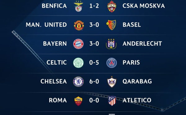 On pouvait pas rêver mieux comme début de la plus prestigieuse des compétitions de clubs. Une avalanche de buts sur presque toutes les pelouses d'Europe avec des cartons assurés par le Psg (5-0) face au Celtics Glasgow et Chelsea (6-0) face à Qarabag. Tous les résultats en photo...A noter le doublé de Messi face à la...