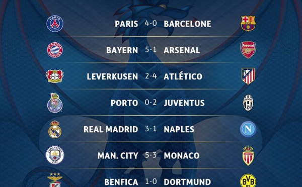 Les affiches Porto - Juventus / Fc Séville - Leicester, complètent les résultats des huitièmes de finale aller de la Ligue des champions édition 2017. Italiens et Espagnols l'ont emporté ce mercredi soir sur les Portugais et Anglais. Ils aborderont la manche retour avec cet avance. Laminés 4 - 0 par le PSG, le Barça pourra-t-il...
